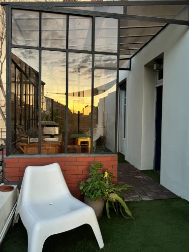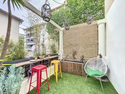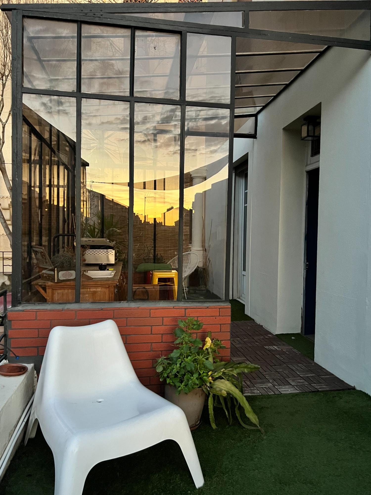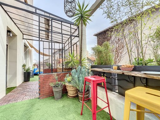 La terrasse vue comme une extension de l'appartement, combinant à la fois l'utile à l'agréable, avec sa cuisine d'été et sa végétation adaptée, pour une durabilité de son aménagement.